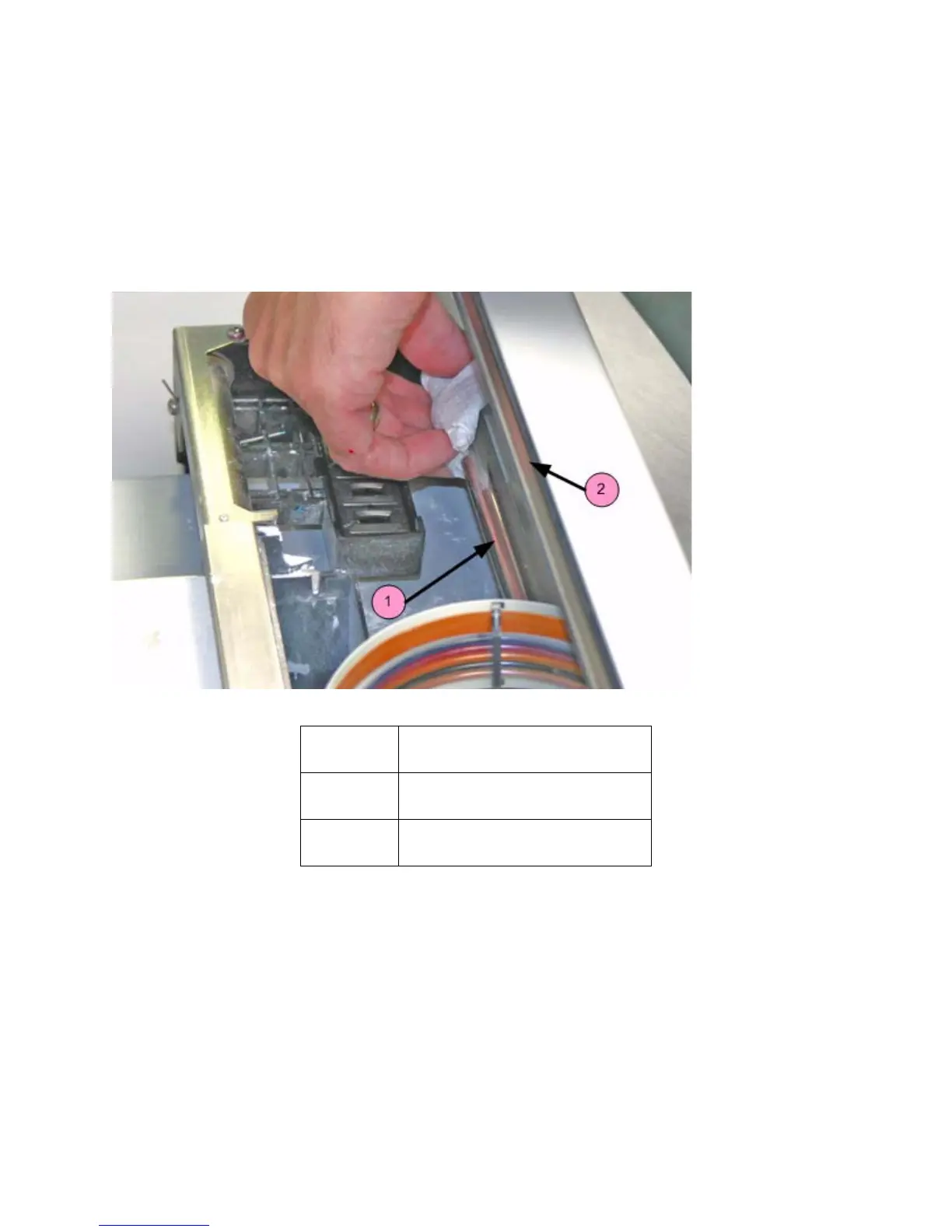 2. Using a paper towel dampened with distilled water, wipe the top and bottom Rails to remove any Core.