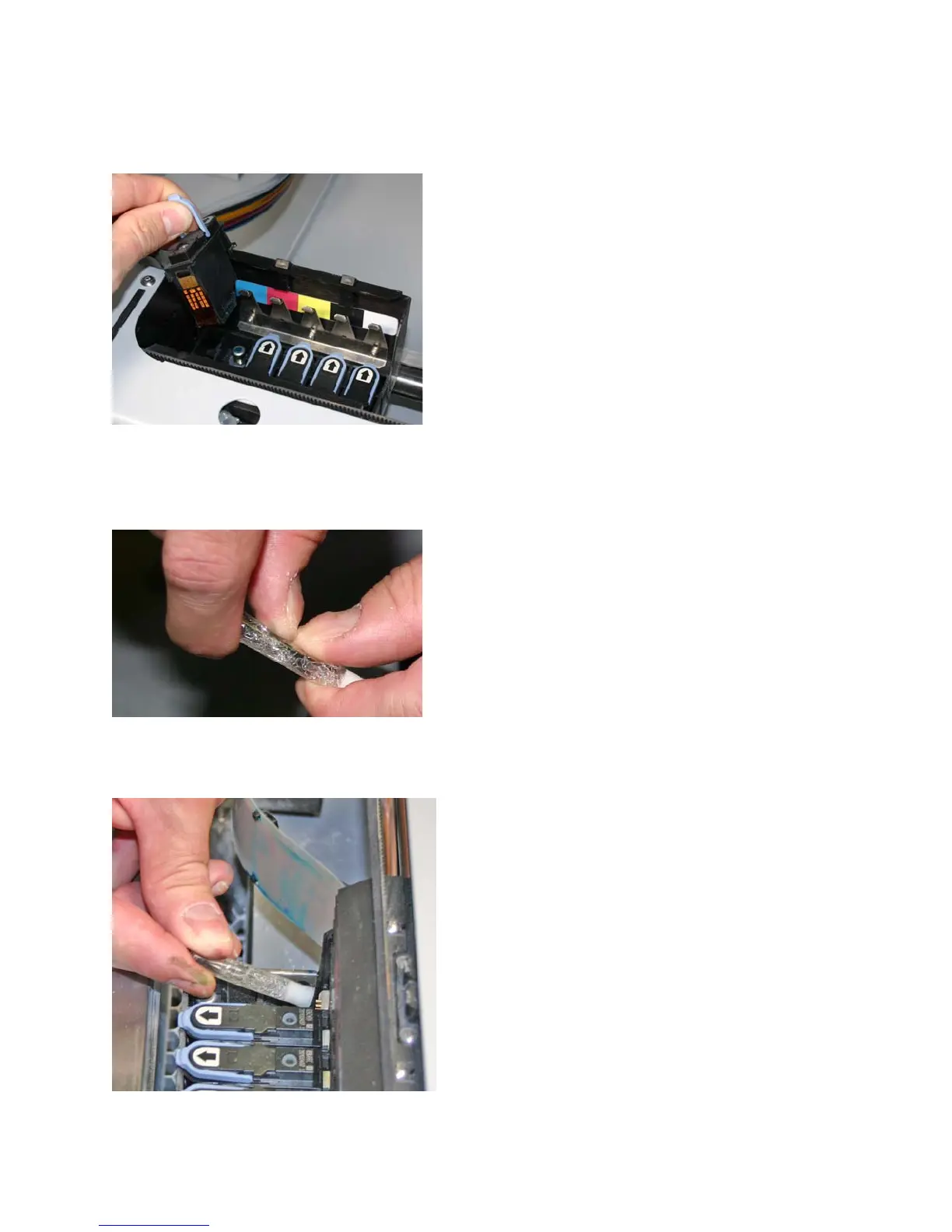 8. For each printhead being replaced, wipe off all the pogo pins (inside the carriage) with the alcohol