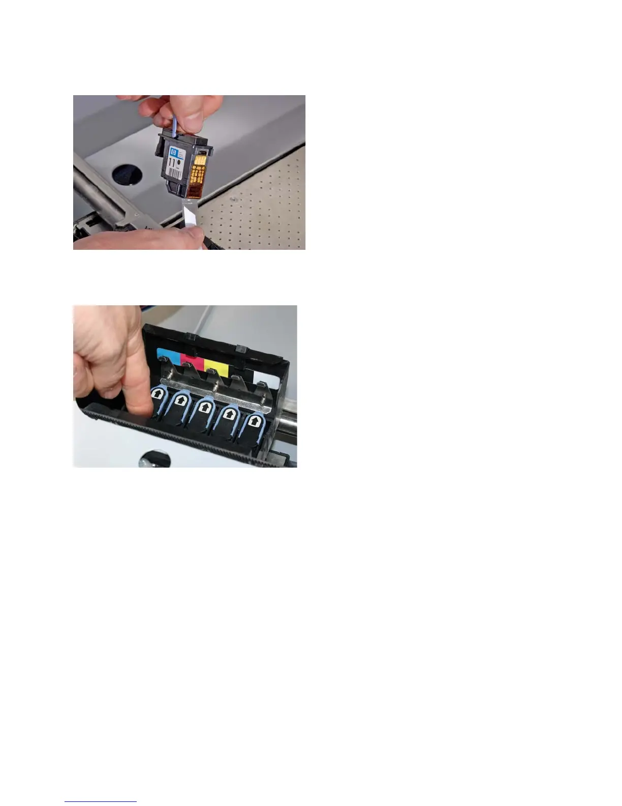 10. Insert each new printhead. Press down firmly on the top of the printhead, at the same side as the pogo
