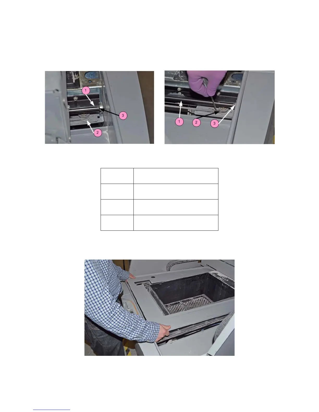 5. Using the pick from the Accessories Kit, reach below the slow axis rail and carefully remove any debris