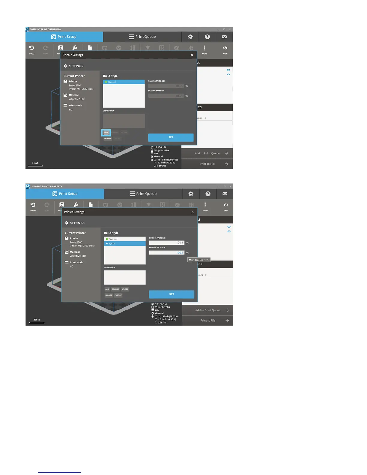 printable size for XYZ accordingly per shrink compensation. You can now load jobs and print to the printer using these Shrink Compensation values.