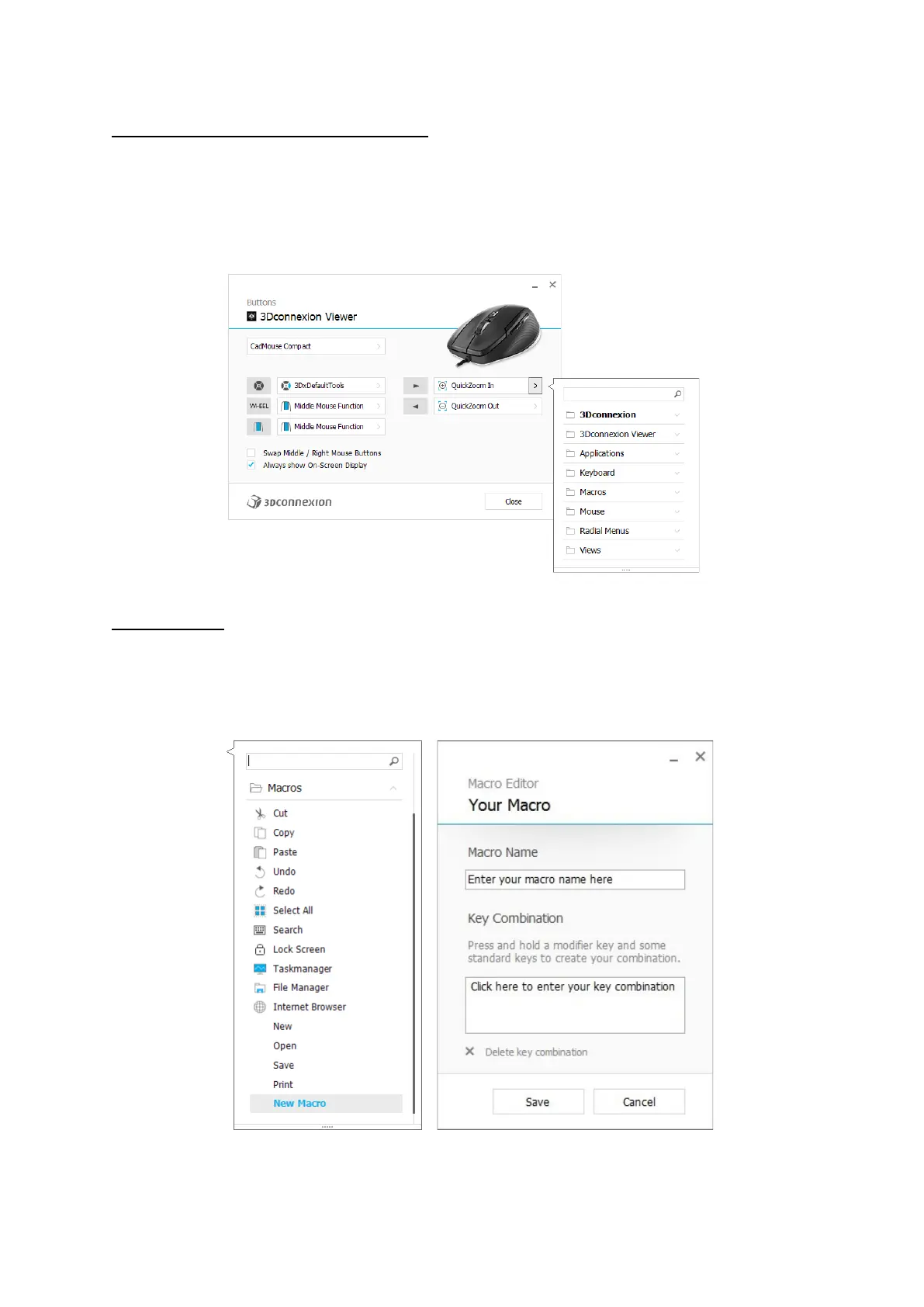 Clicking on the > arrow on the right-hand side of the button field opens a flyout window for that CadMouse button:
