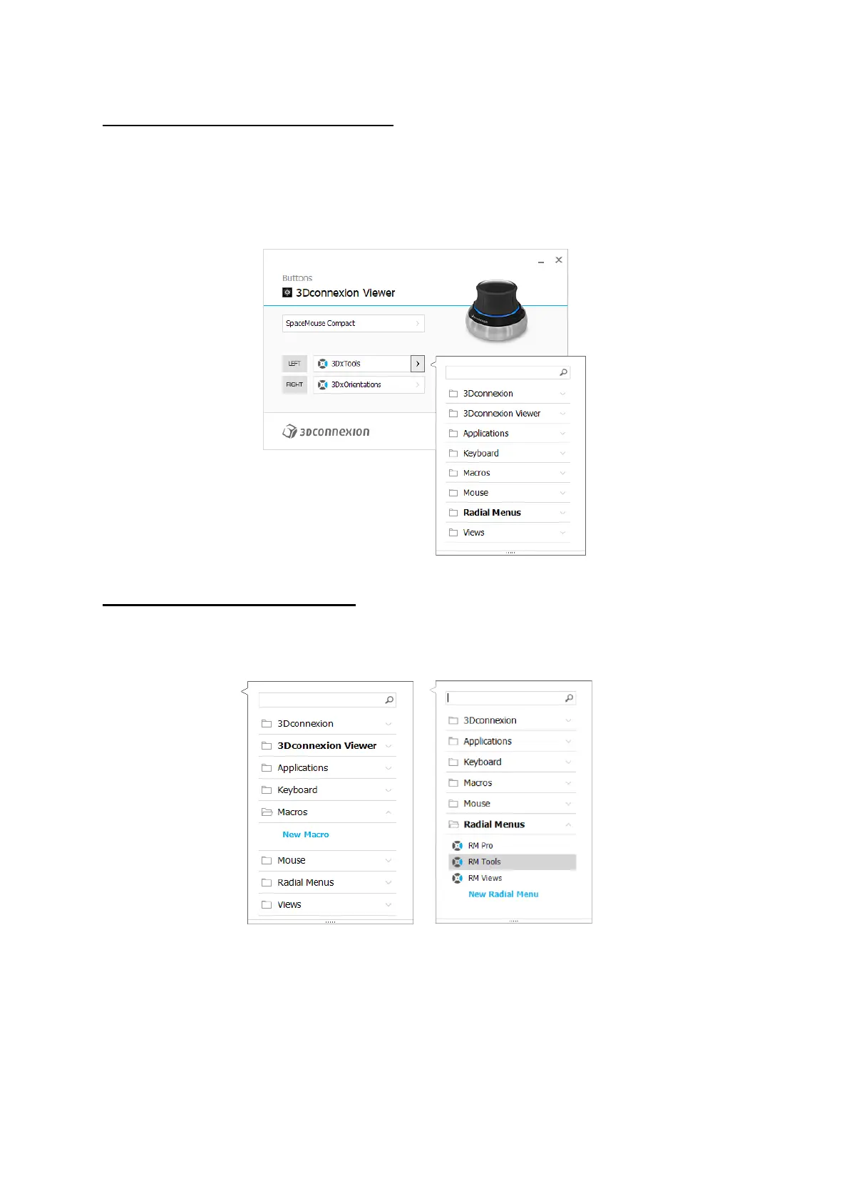 Clicking on the > arrow on the right-hand side of the button field opens a flyout window for that SpaceMouse button: