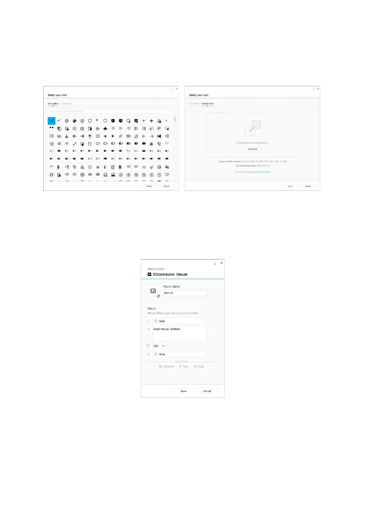 In a first step you are asked to give your macro or radial menu a name and assign an icon to it.