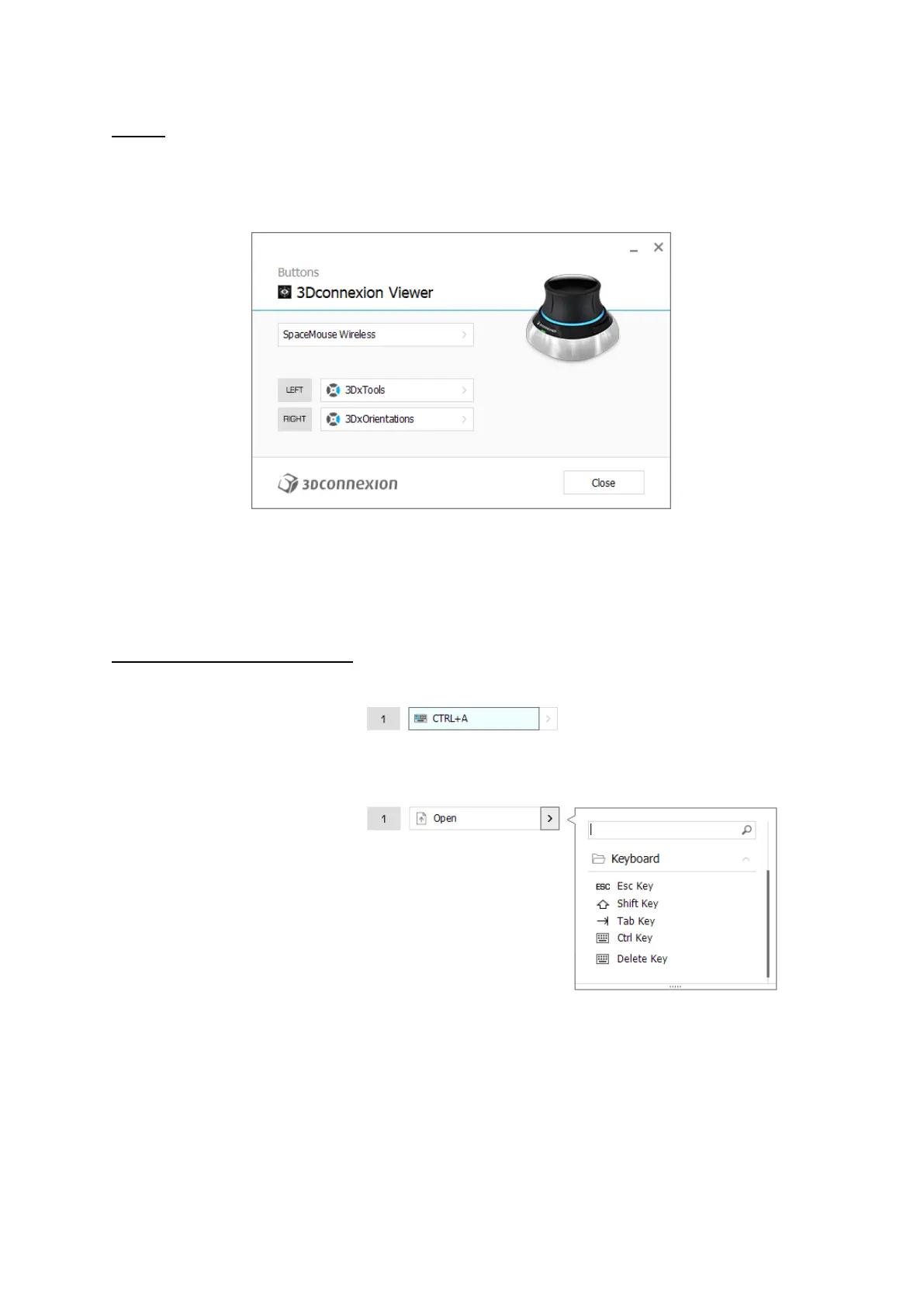 The Buttons panel within 3Dconnexion Settings allows you to assign commands, macros or, radial menus. The name of the