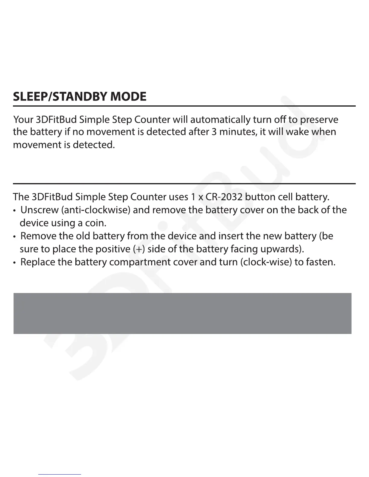 3DFitBud A420S - Device Operations; Sleep;Standby Mode; Battery Replacement