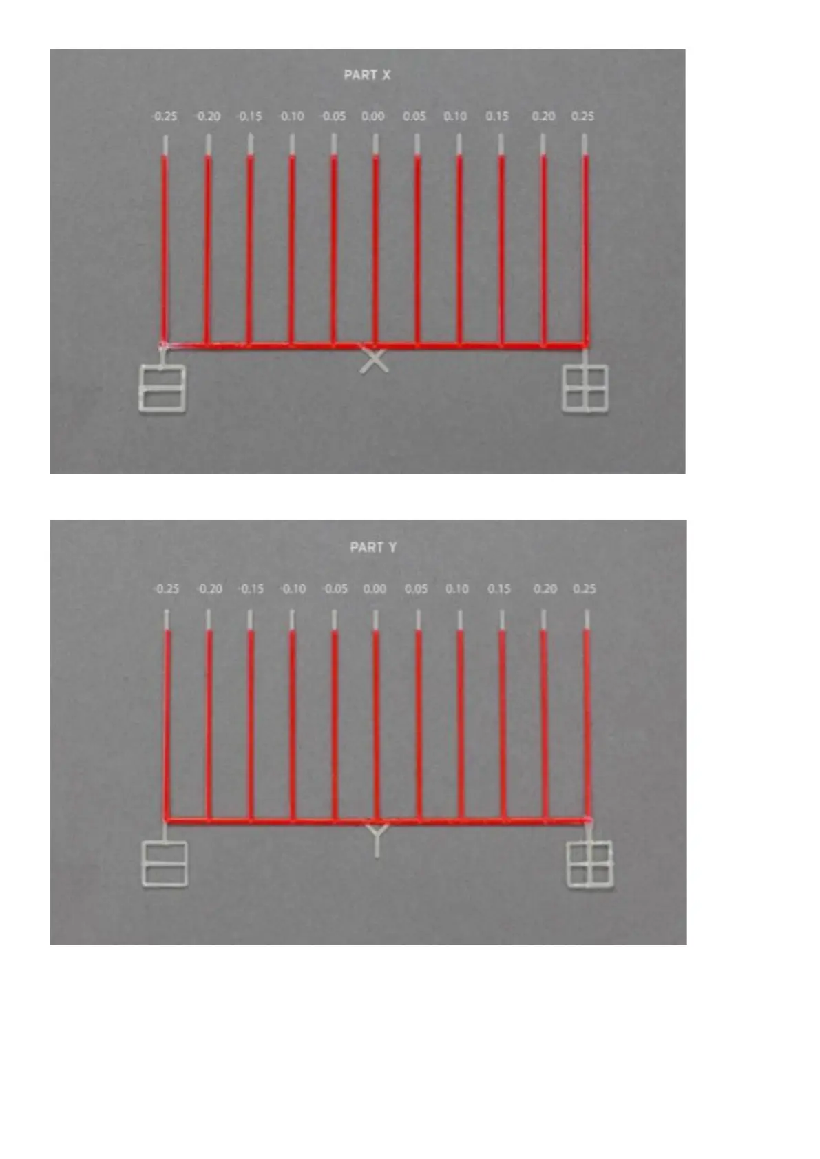 axis, while the second one (at the bottom) has correctly calibrated offset values along the X axis (fig. 64). With