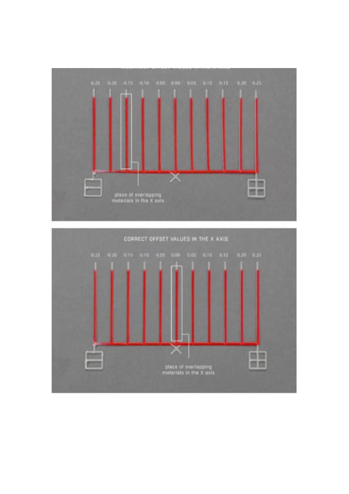 point 0.00. This line is distanced from point 0.00 at -0.15mm. This means that the X offset value is shifted by -0.15