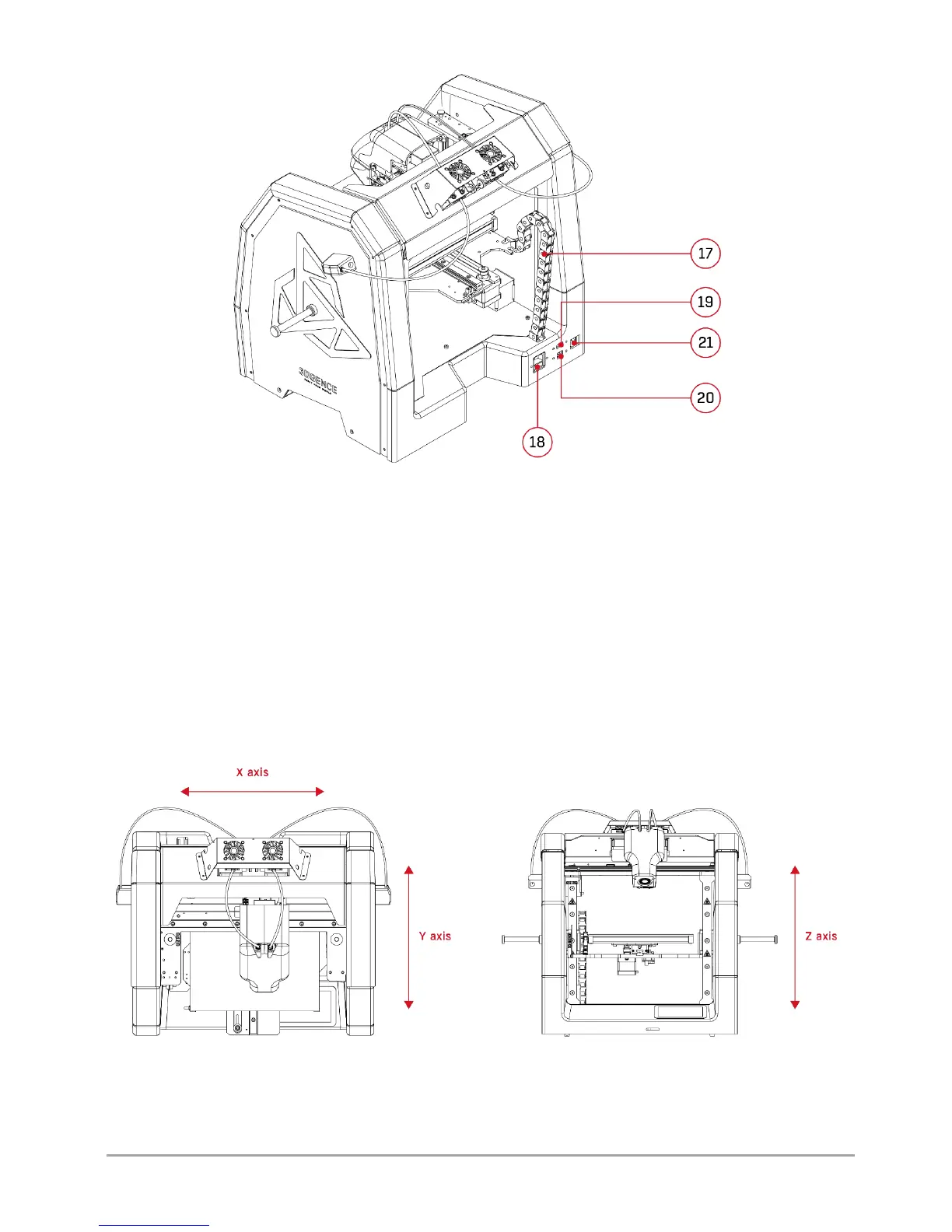 Fig. 11 Designation of 3DGence DOUBLE P255 printer axes