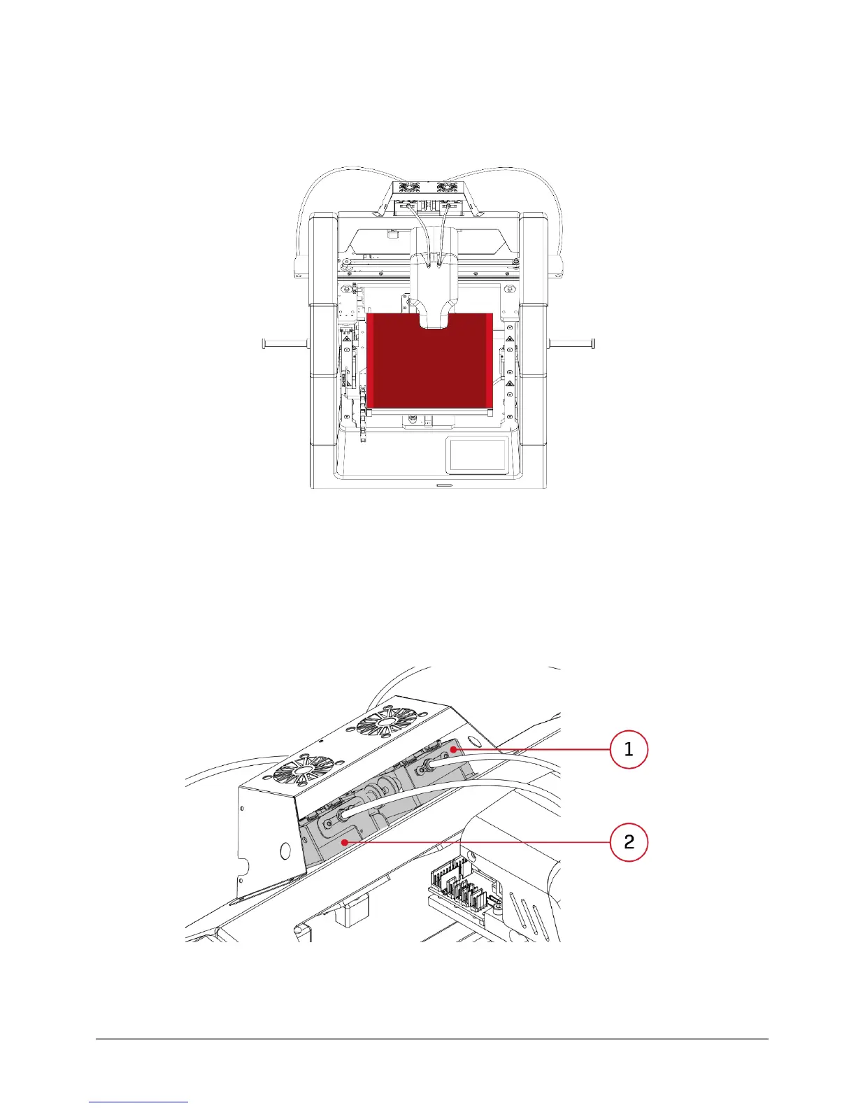 Fig. 13 Extruders of 3DGence DOUBLE P255 printer 1. Extruder T1 | 2. Extruder T0