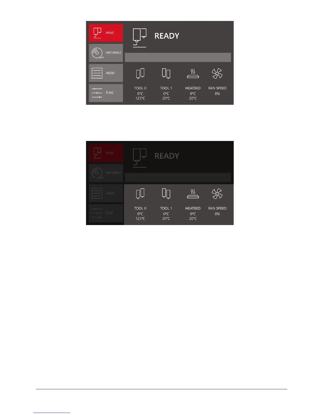 In the lower part of the main panel there are fields containing information on temperatures and status of the printout cooling