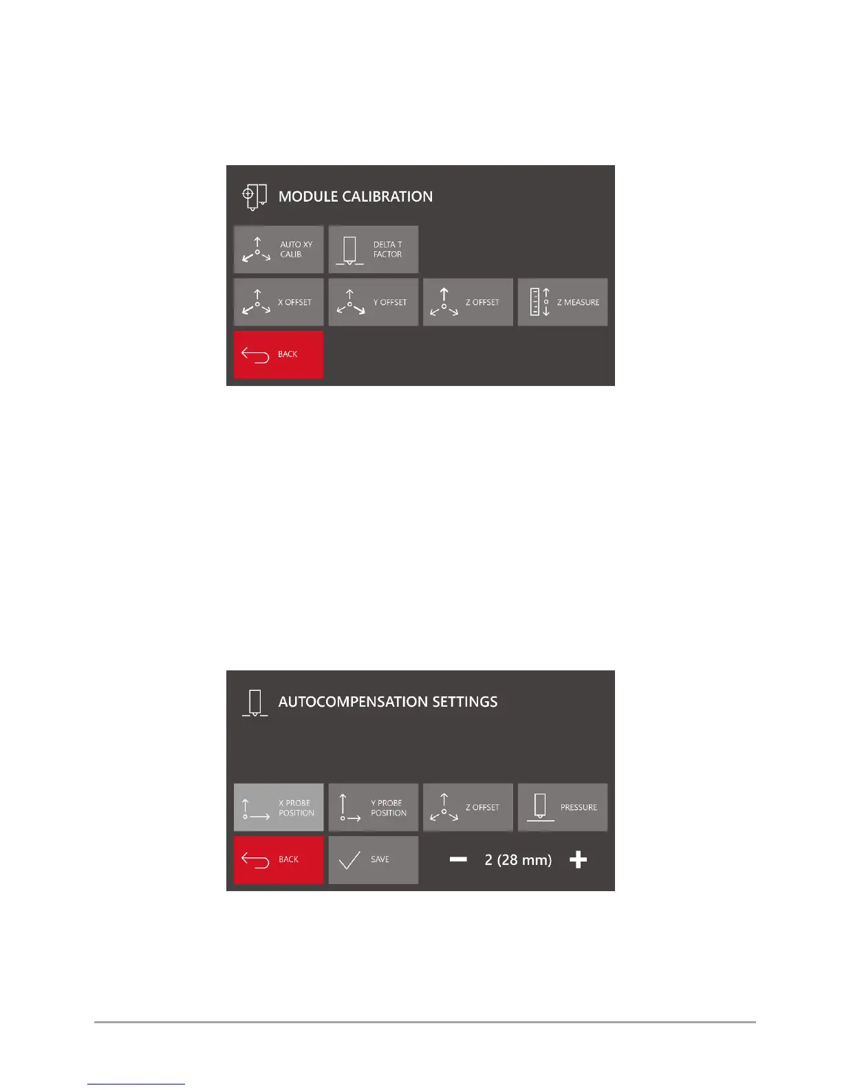 Module calib. - menu of calibration of dual hotend module offsets (fig. 27).