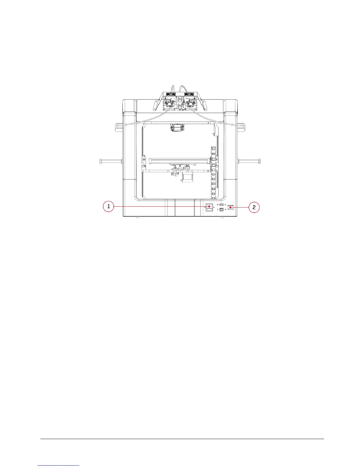 Fig. 36 Rear view of the printer: 1. Power supply socket | 2. Printer switch