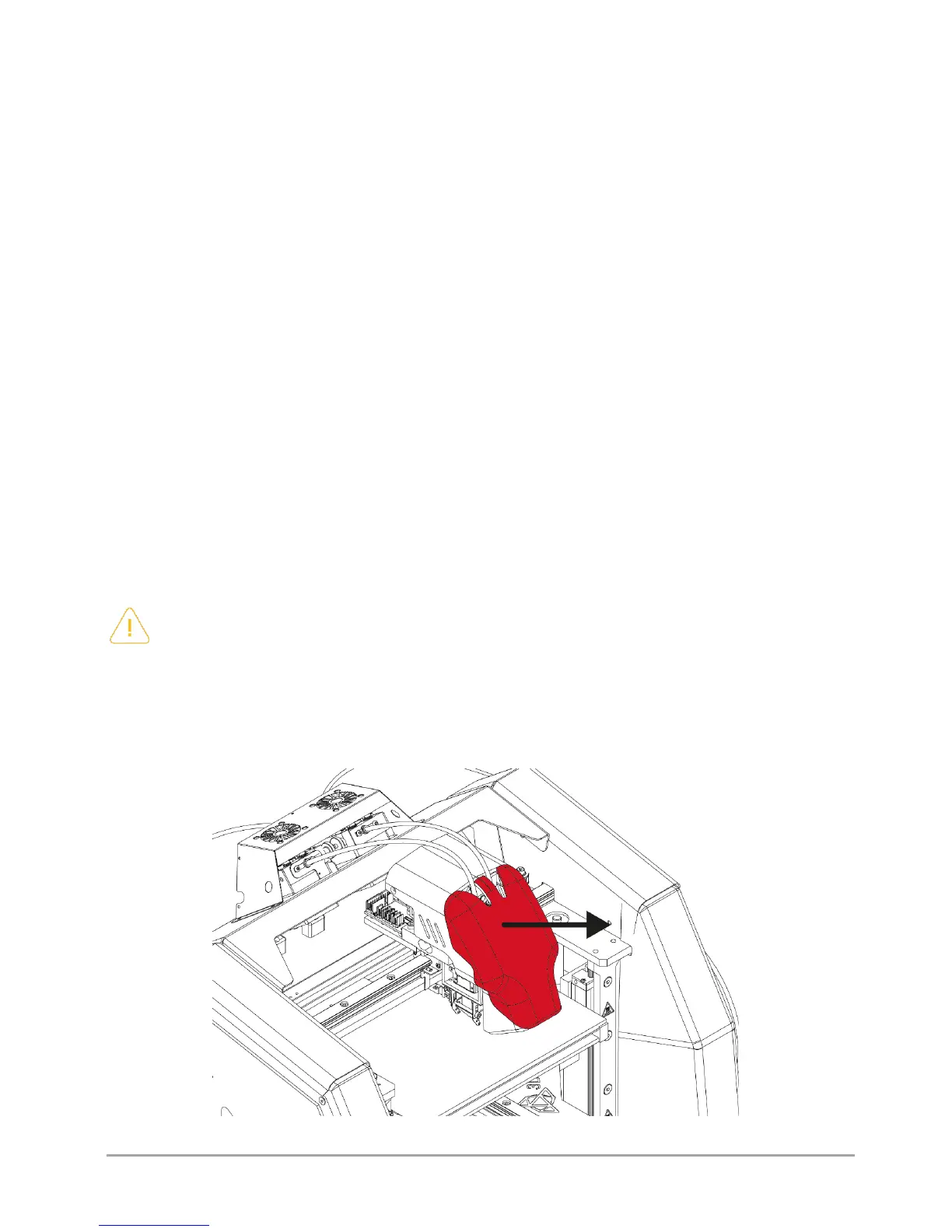 while holding it from the bottom with your hand (fig. 53, yellow colour). Make sure that the hotend does not fall on the