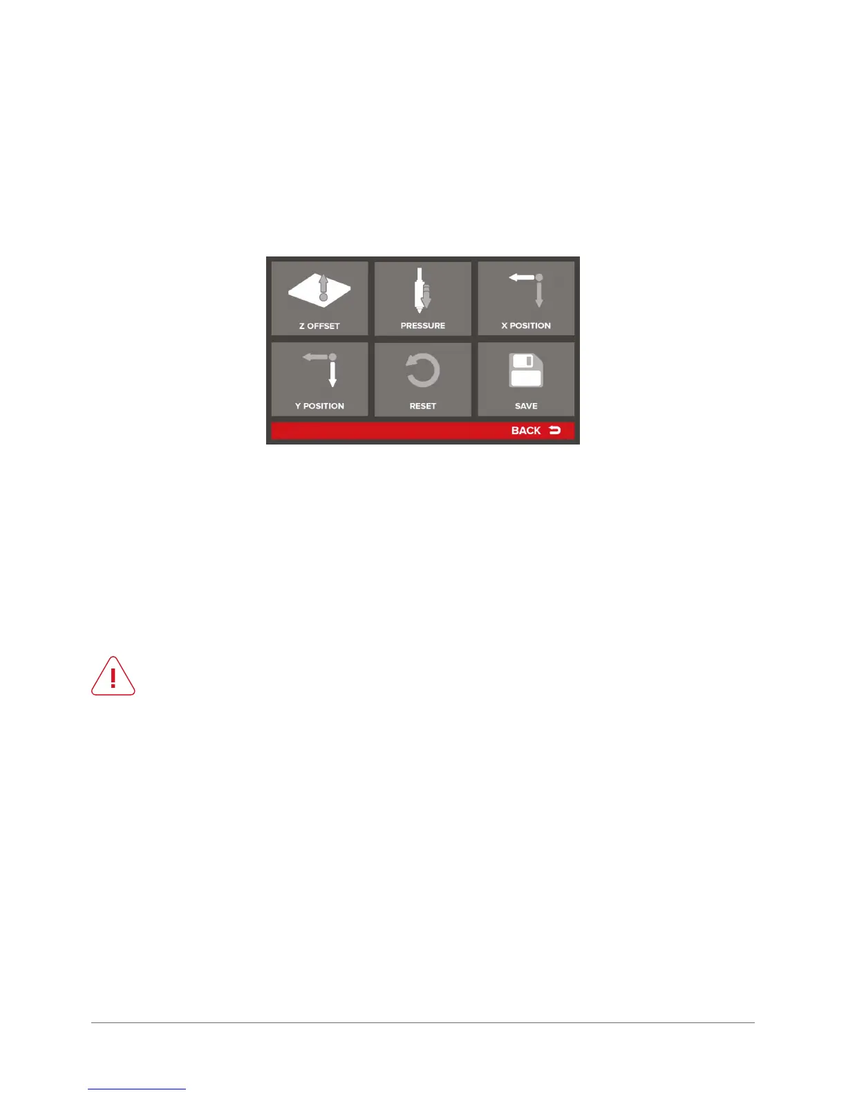 The dif ference resulting from the measurement is saved in the Z Offset box. To conrm the measurement, press the Save.