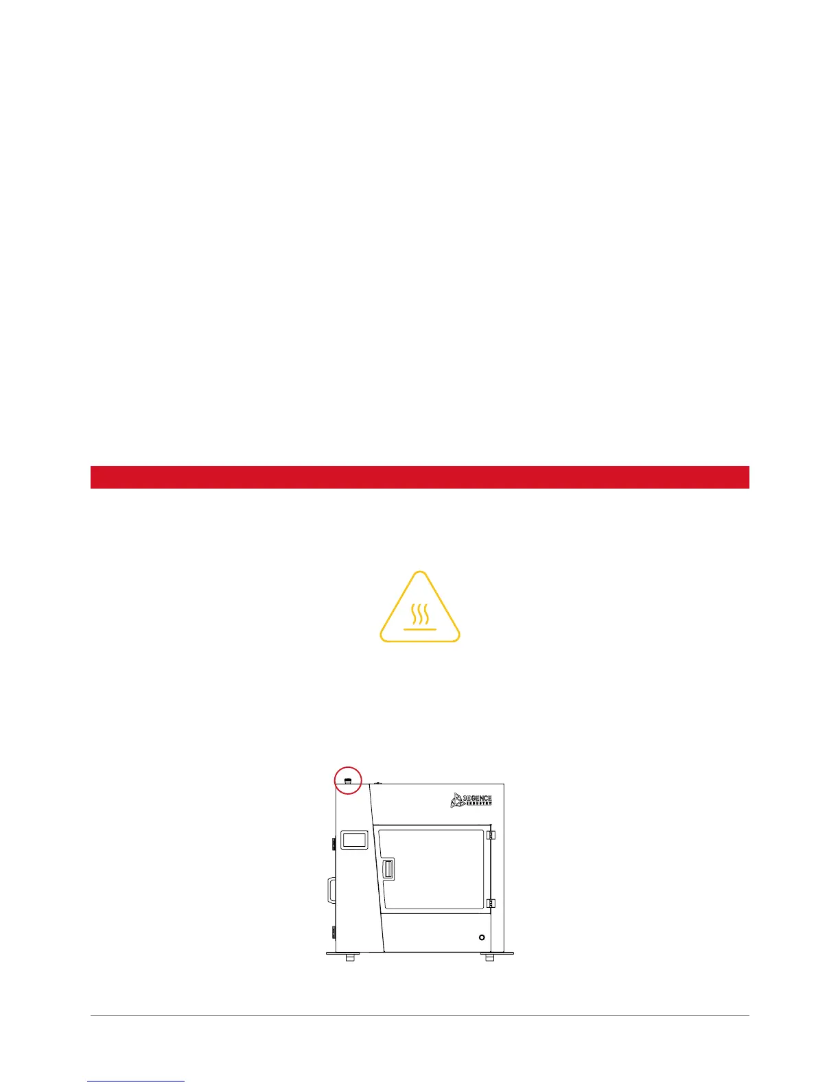 The 3DGence INDUSTRY F340 printer has a number of hazard warning signs. The following sign informs about high tem-