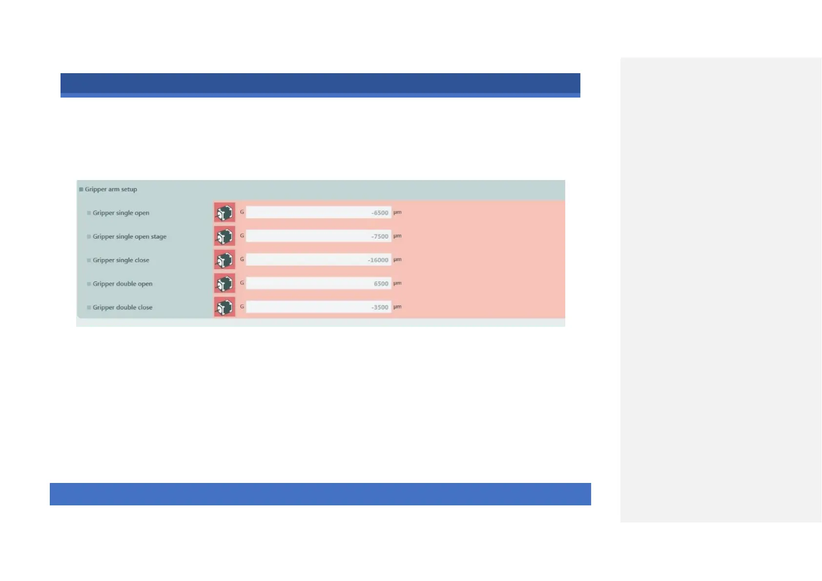 For a single slide, three values must be defined since even two slides can be placed in the Stage at once. The Gripper single open stage value
