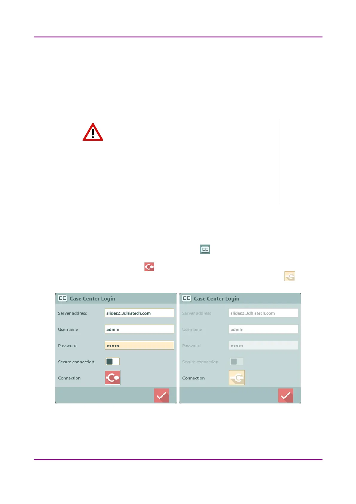 scanning to CaseCenter. If connected to CaseCenter the fields become inactive, and the button is