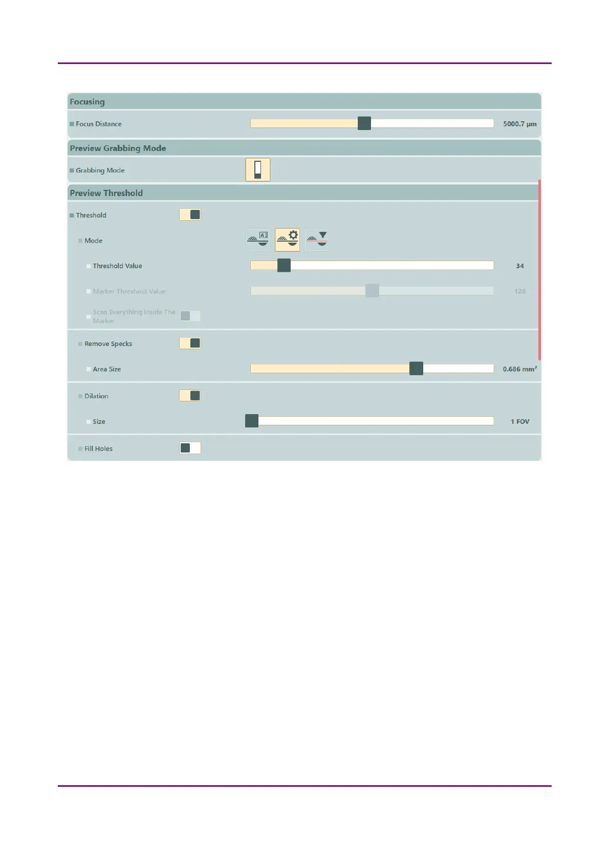 ▪ Area Size – Set the maximum size of specks not to be digitized by adjusting the slider