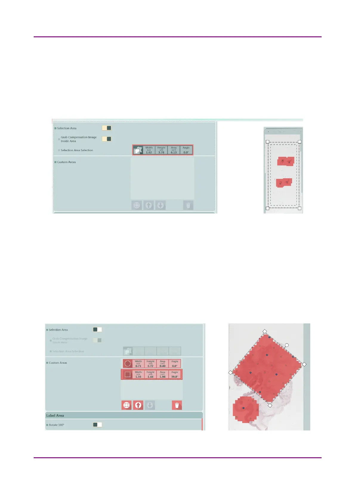 ▪ Selection Area – Manual settings: Width / Height / Area / Angle
