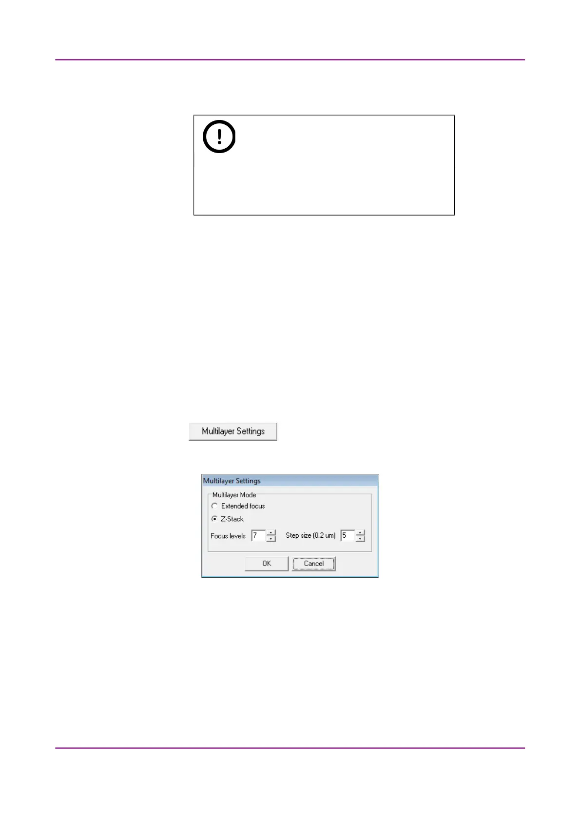 containing settings are the same as in Brightfield mode, but you can select extended focus