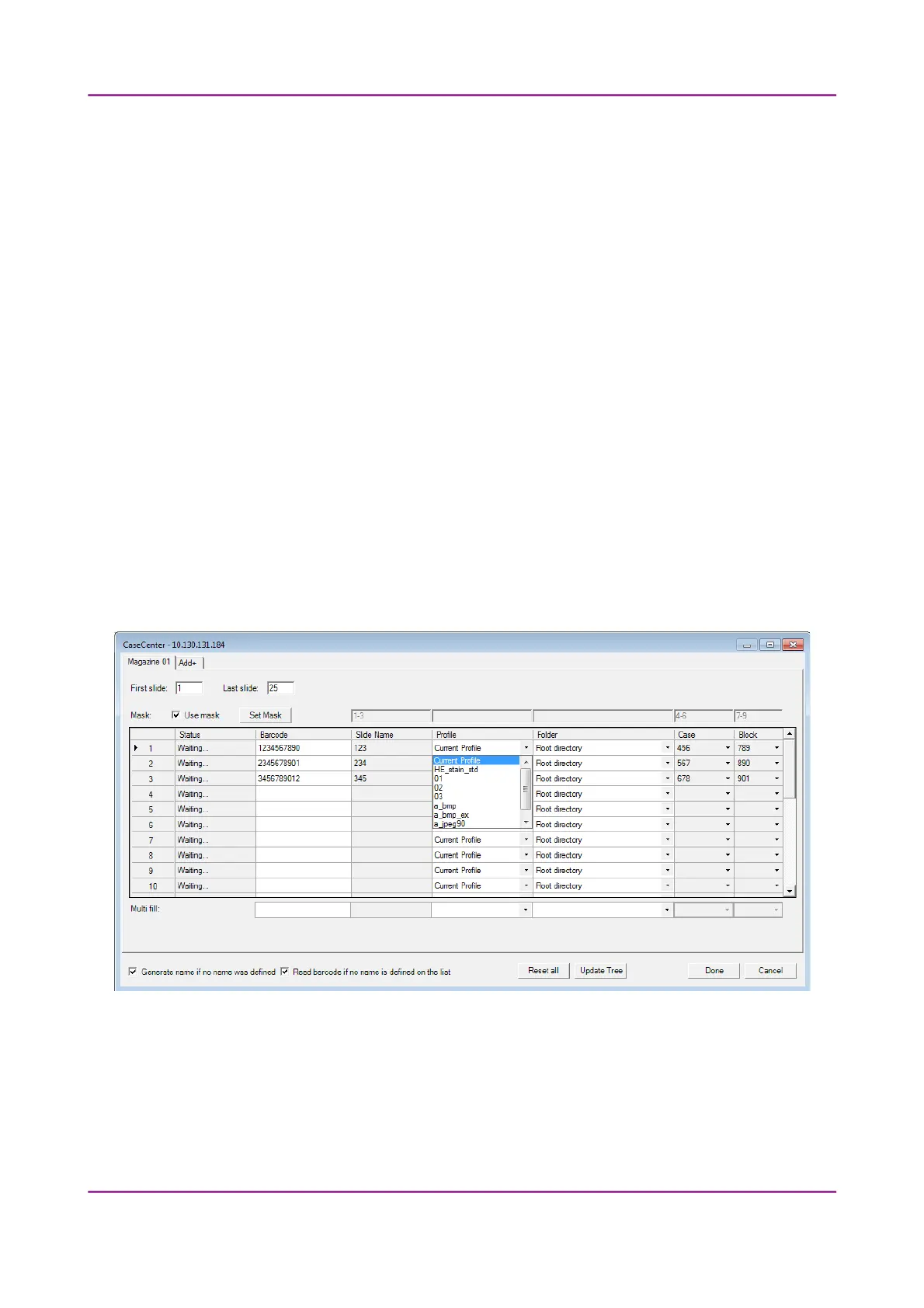 • Profiles can be added by selecting a list entry from the Profile drop-down list.