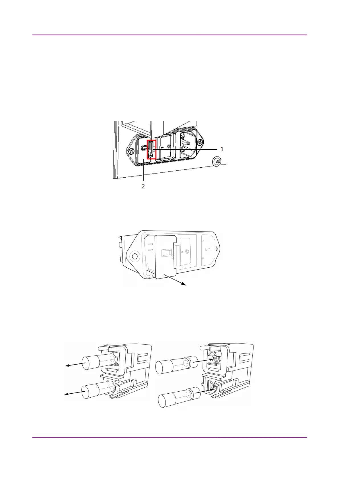 2. The fuse compartment is located next to the main power supply switch at the back side of