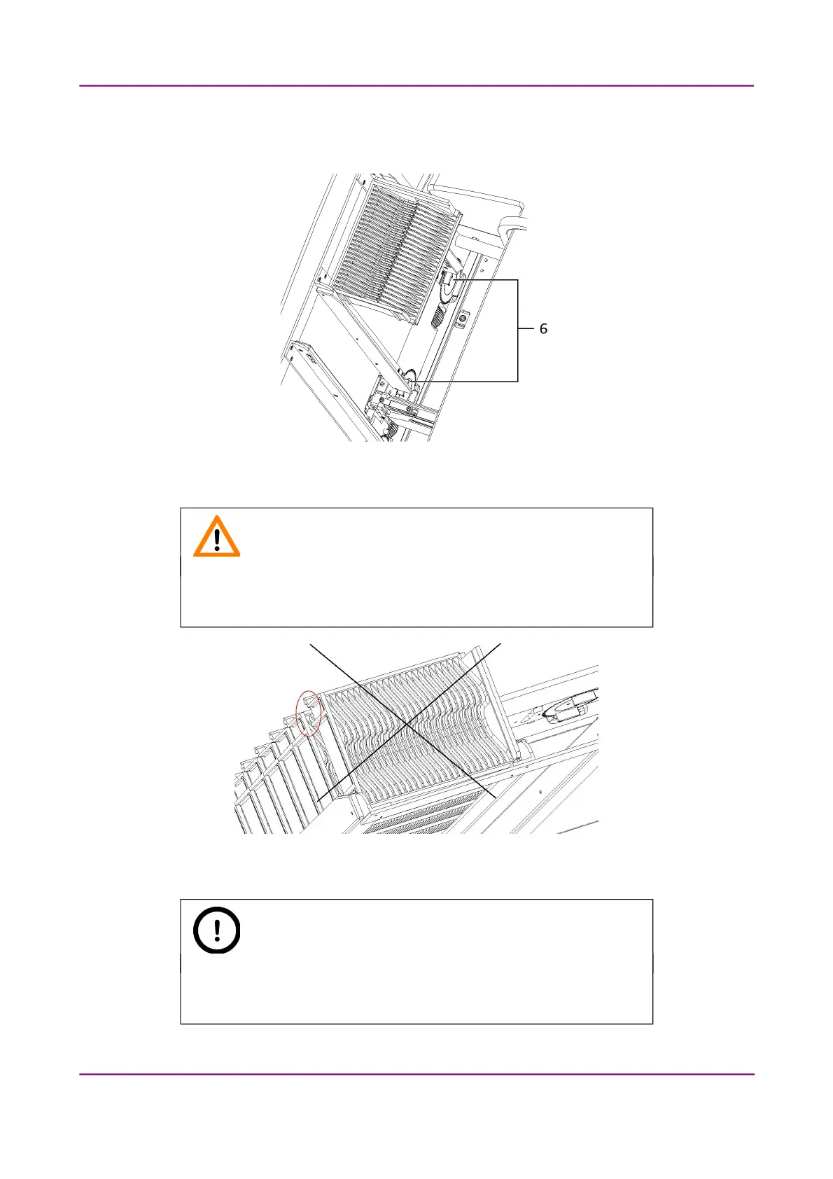3. Slide down the magazine on the input guide rails until it rests on the gear wheels (6) or