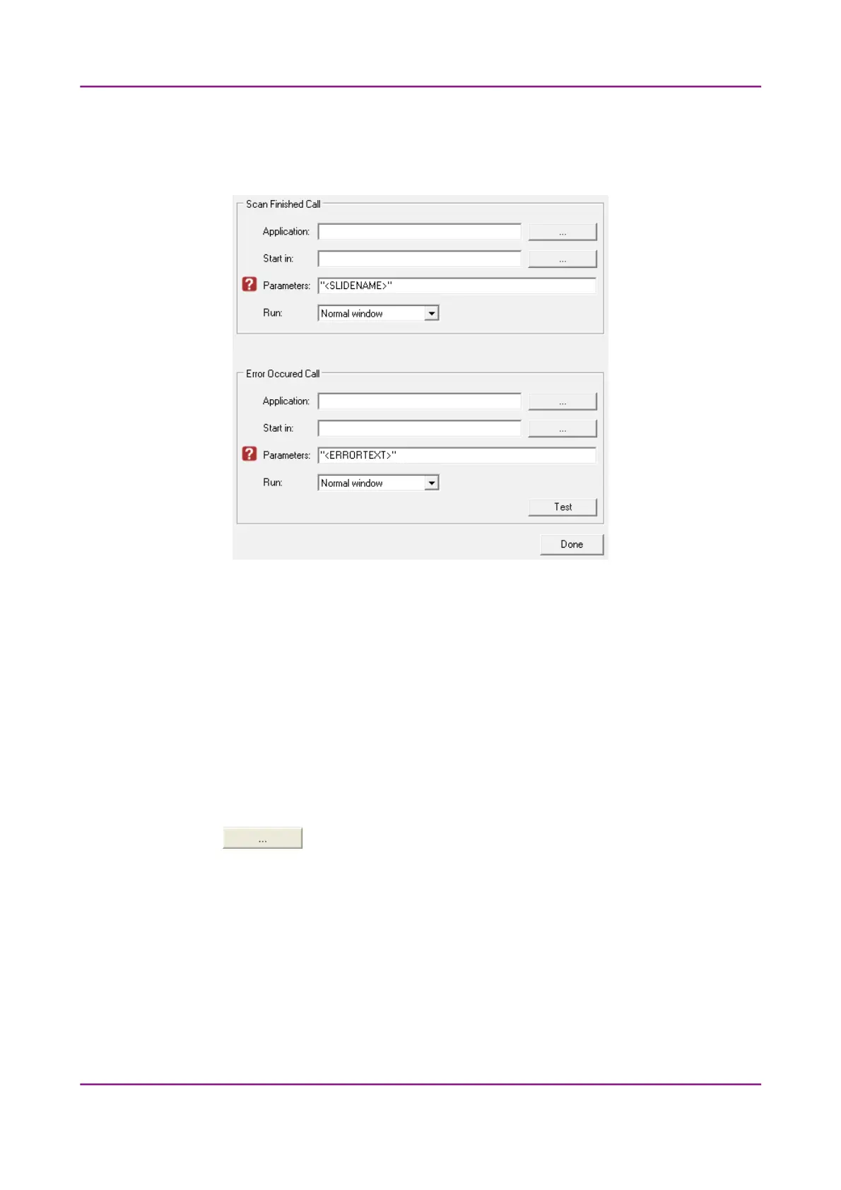• For Scan Finished Call: "<SLIDENAME>" – transfers the slide name
