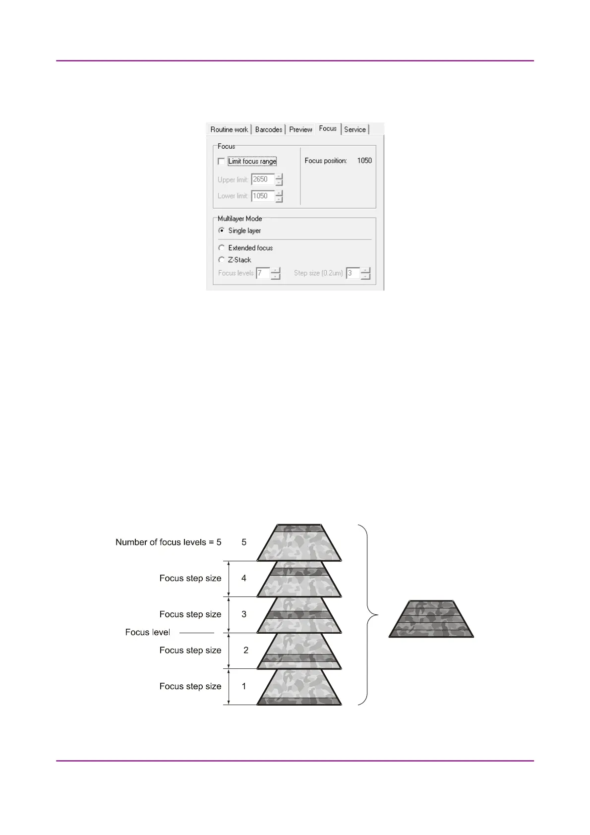 limits by selecting the desired value in the selection boxes. This is useful if focusing was not