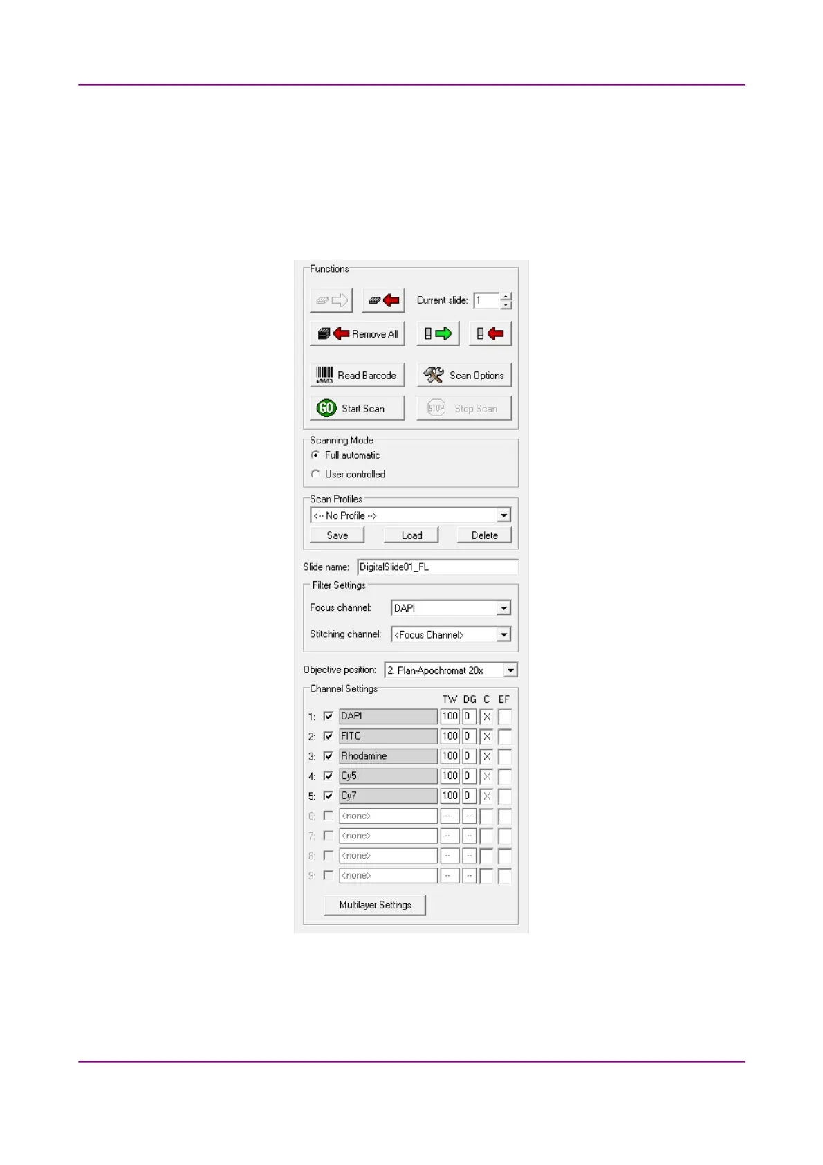 3DHISTECH Pannoramic 250 - Using Fluorescent Manual Mode; Routine Work Tab Panel