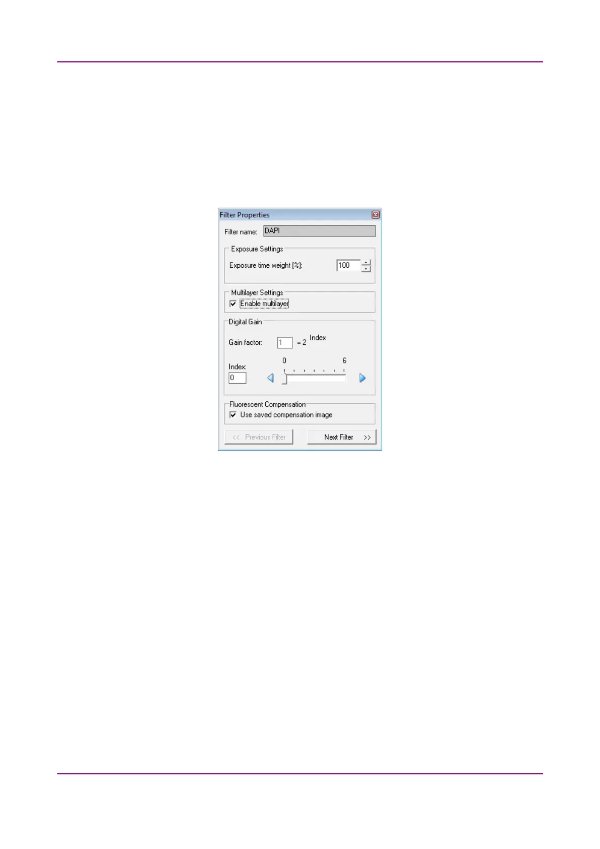 For more information on predefining filters, see section 4.2.3 Microscope Settings / Base