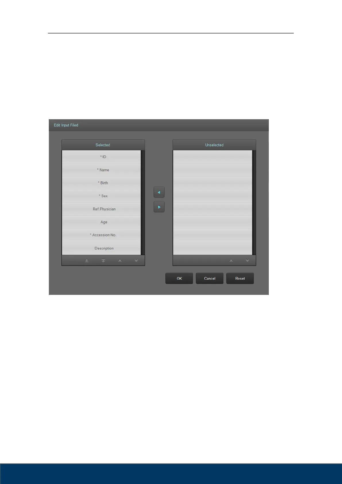 In the Input Field Edit dialog box, you can change the order of the input fields, and add or