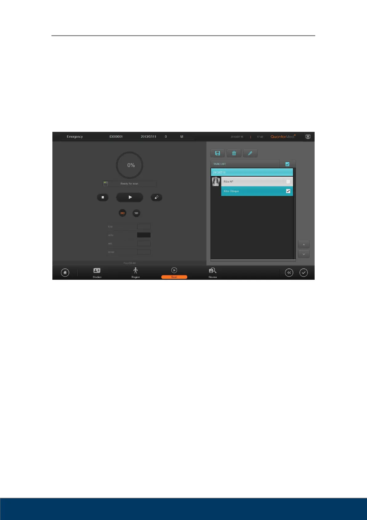 In the Scan screen, you can insert a cassette into the FireCR and acquire images.