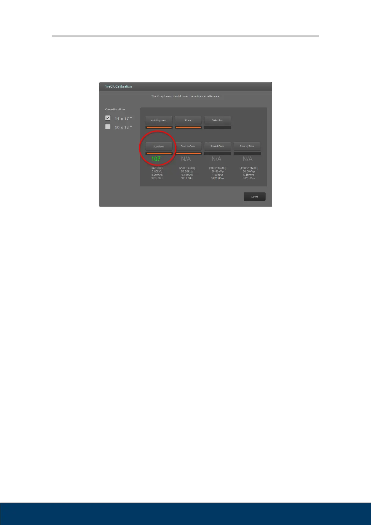 click Scan Blank to acquire the first calibration image.
