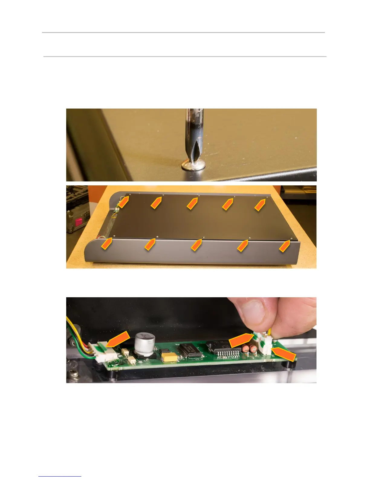 2. Remove the 6 screws on top of the Internal Cover (#2 Phillips). Note: Some scanners have 10