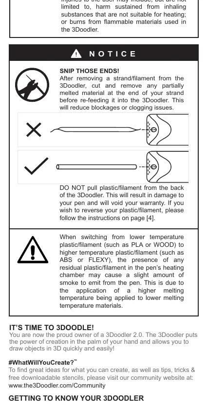 ALWAYS 3DOODLE IN A WELL VENTILATED SPACE