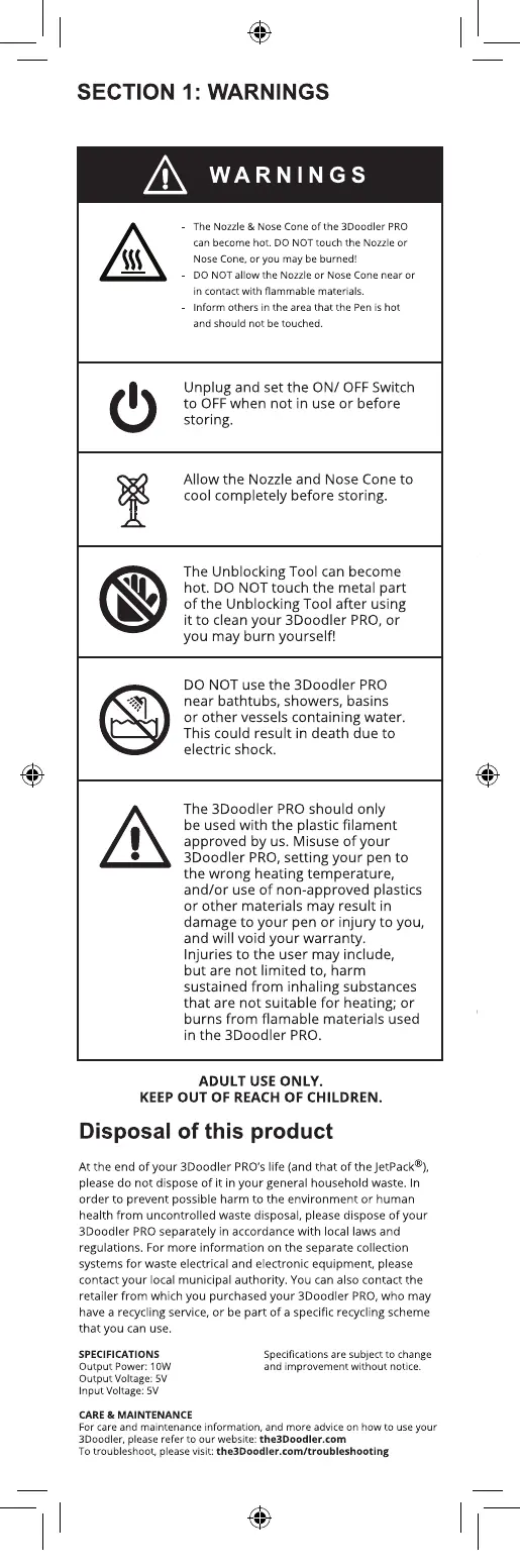 3Doodler PRO - SECTION 1: WARNINGS; General Safety Warnings; Usage Restrictions