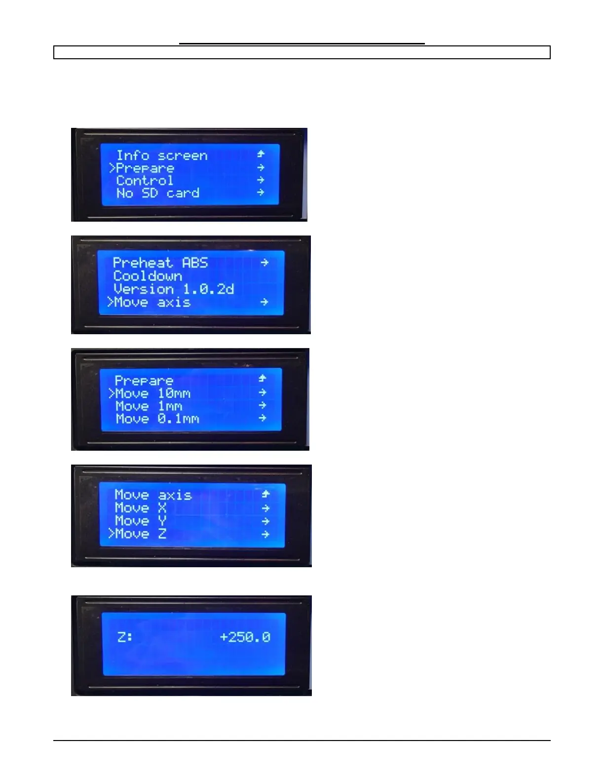 navigate to Prepare > Move Axis > 10 mm > Move Z > +250.0