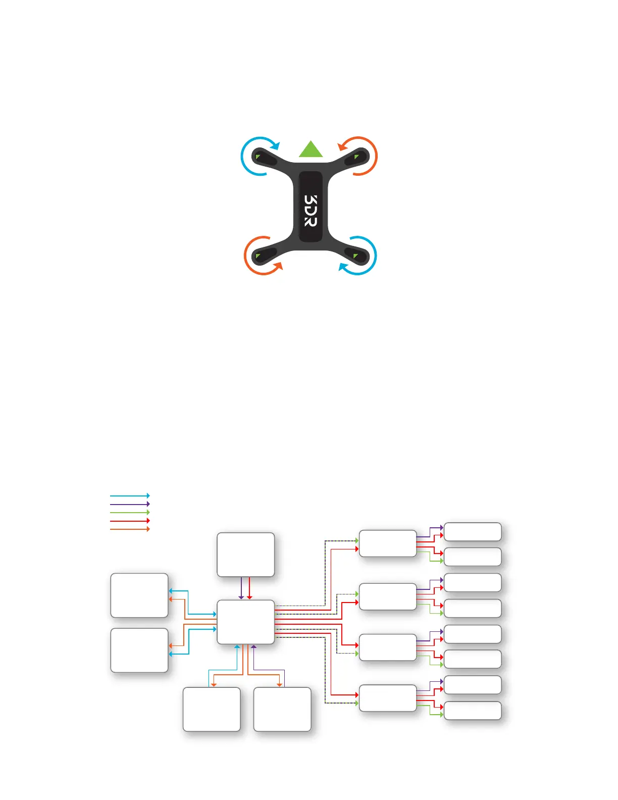 components of the ESCs and receive power and I2C signals via the ESCs.
