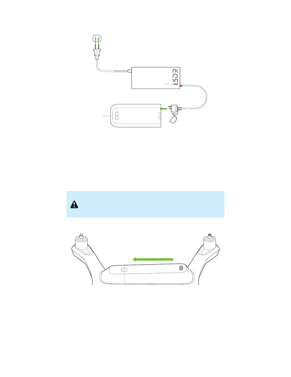 To power Solo, insert the battery into Solo’s battery bay and slide the battery forward until it clicks into place. Press