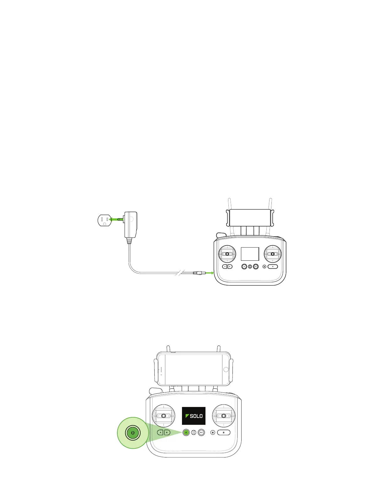 To charge the controller, connect the controller charger to the barrel jack on the side of the controller and to a