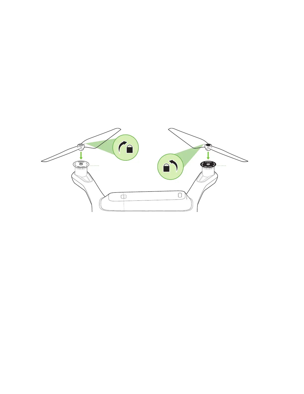 dans le sens inverse des aiguilles d’une montre. Vérifiez les icônes de verrouillage/déverrouillage sur chaque hélices