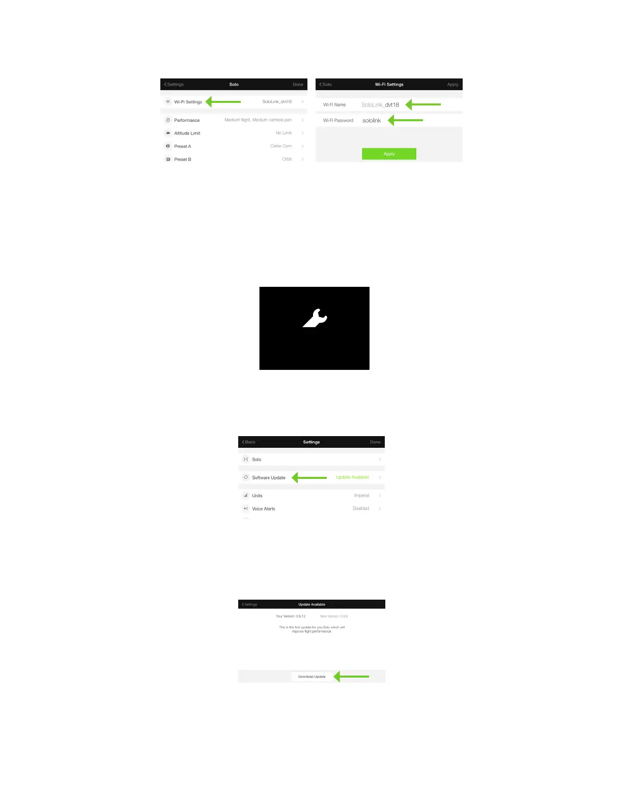 connectée au Wi-Fi de Solo. Le processus de mise à jour peut prendre jusqu’à 10minutes.