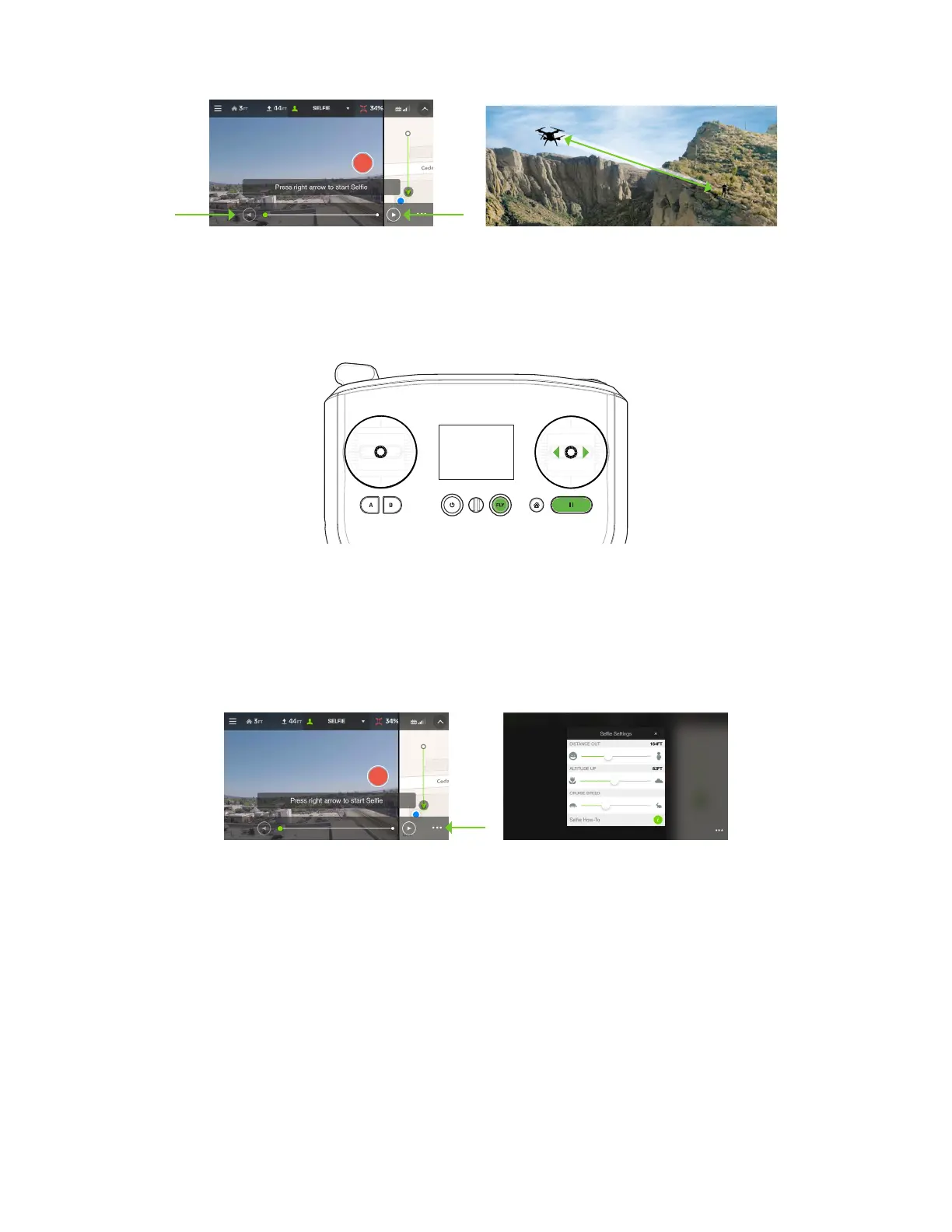 Pour contrôler un selfie en utilisant la manette, utilisez le joystick droit pour faire avancer et reculer le Solo le long de