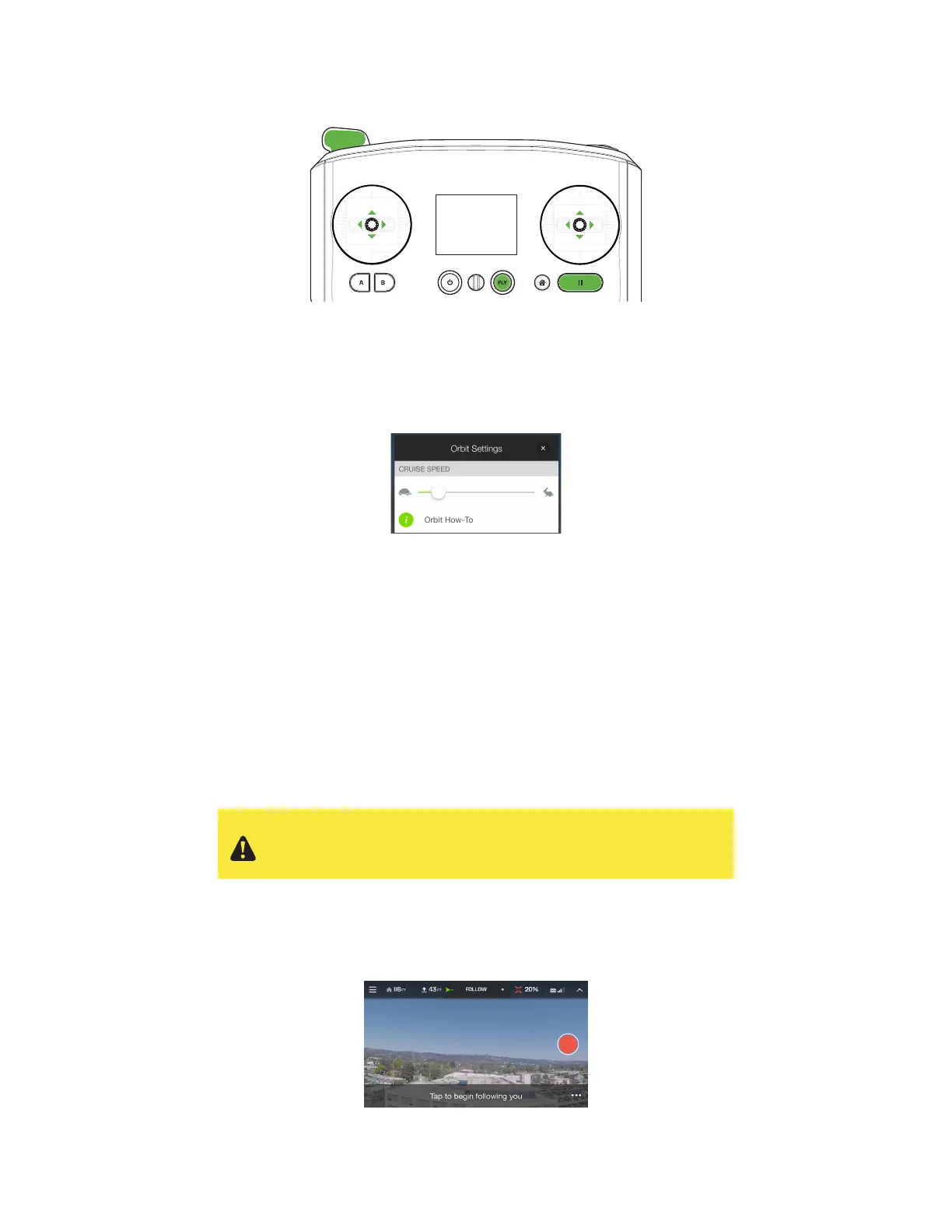 utiliser un pilote de sécurité pendant le Suivi. Le sujet portera le dispositif mobile et sera suivi par le Solo, et le pilote