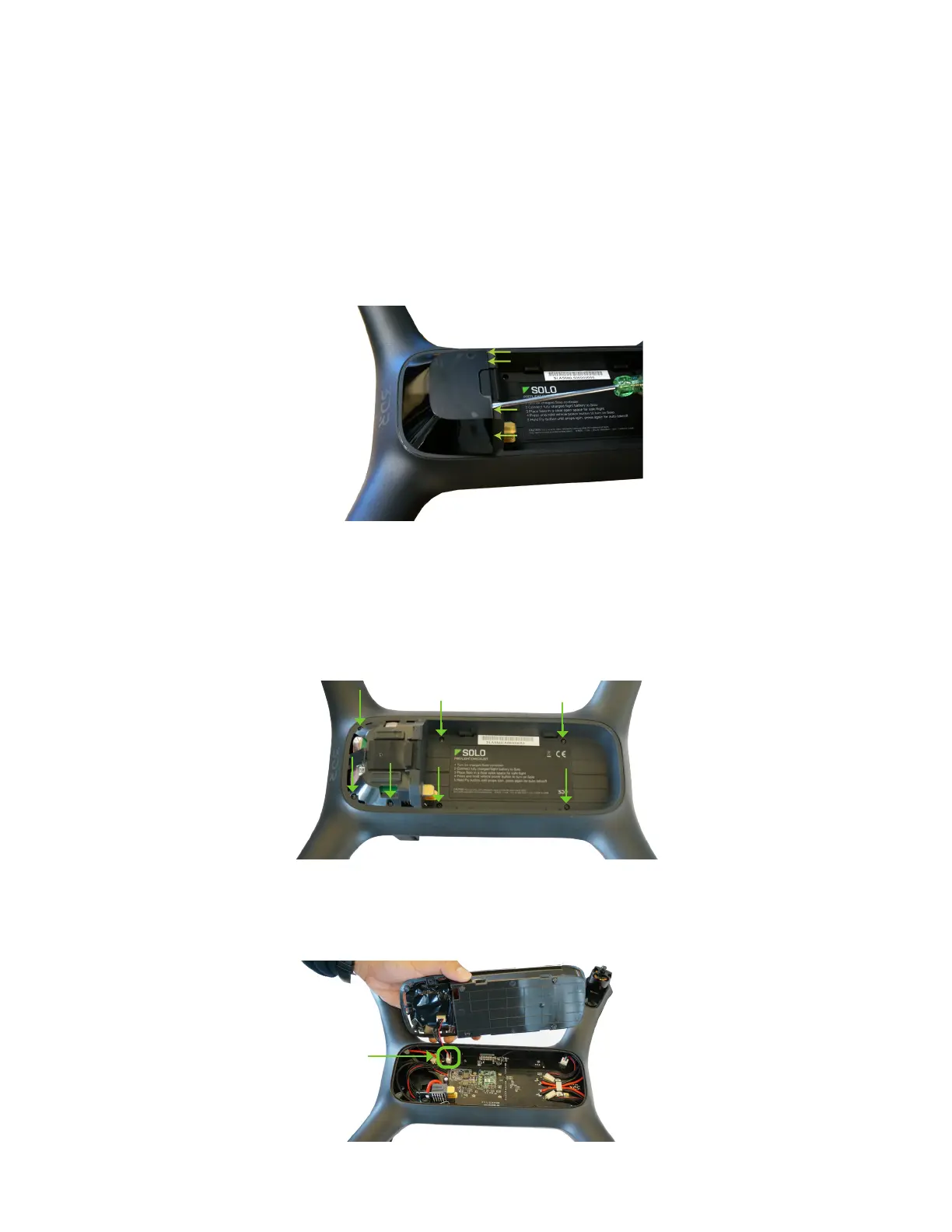Le plateau de batterie reste relié au Solo par l’intermédiaire du câble GPS. Levez soigneusement le plateau, juste