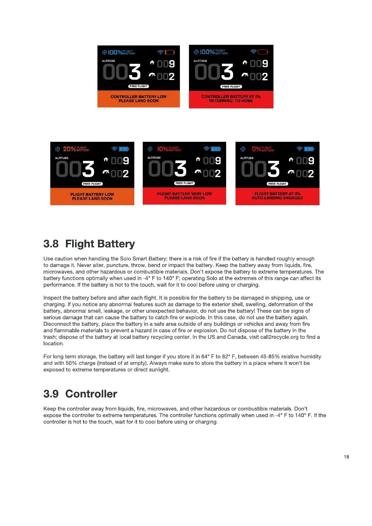 Figure 3.7.1: Low controller battery warning and return-home notications