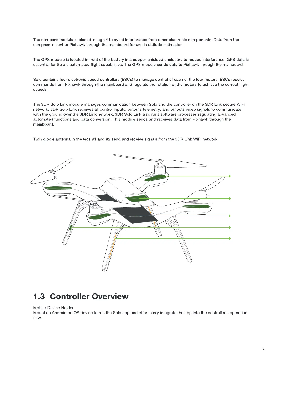3DR Solo - Compass Module; GPS Module; Electronic Speed Controllers; 3 DR solo Link