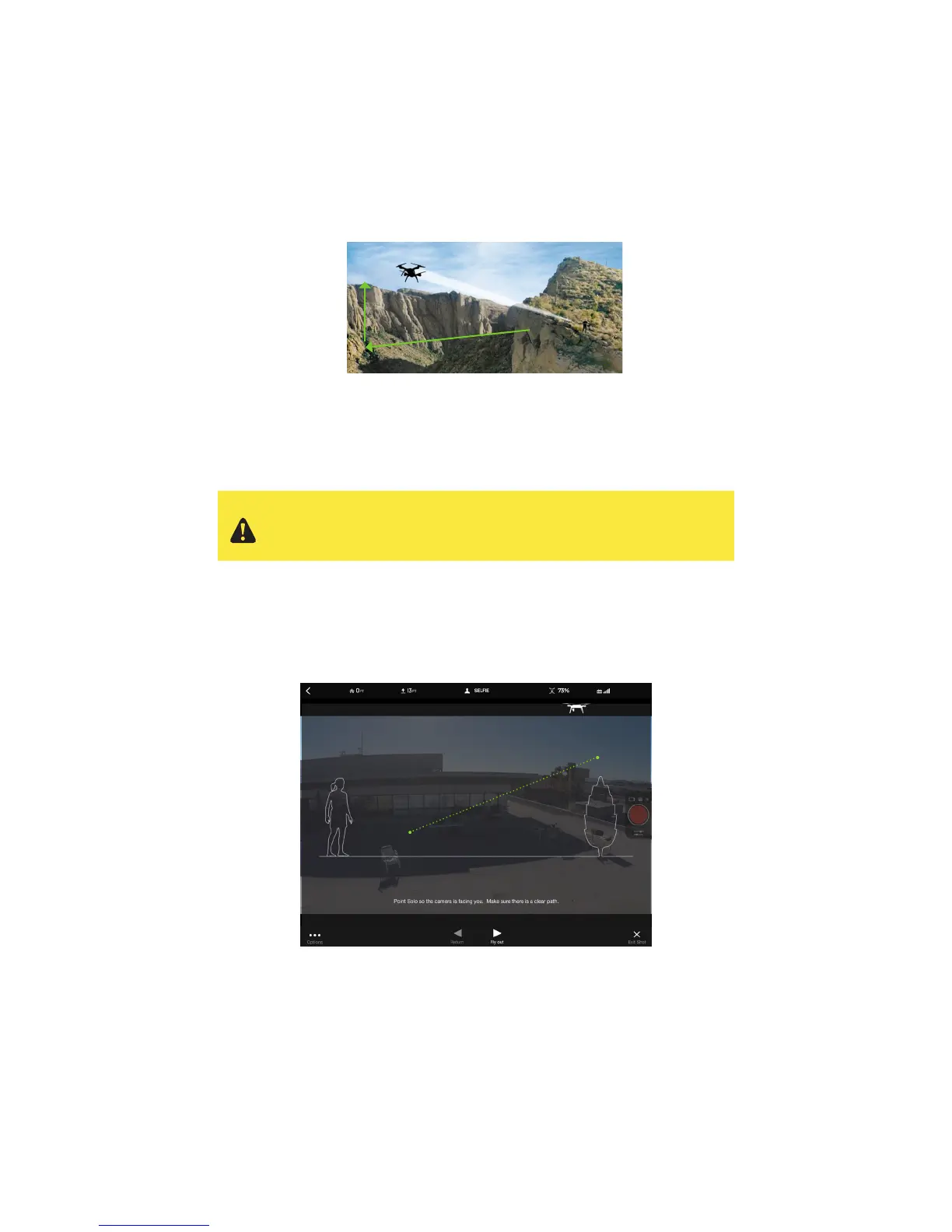 a Selfie shot, always ensure that there is a clear path 200 feet (61 m) behind and above Solo. Once you activate
